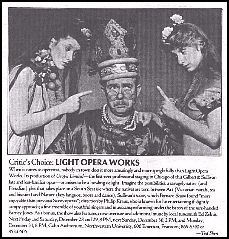 The society welcomes contributions of pictures, articles, reviews, personal reminiscences, and any other information pertinent to the history of Light Opera Works in it's first eighteen years; or maybe just to say hello!